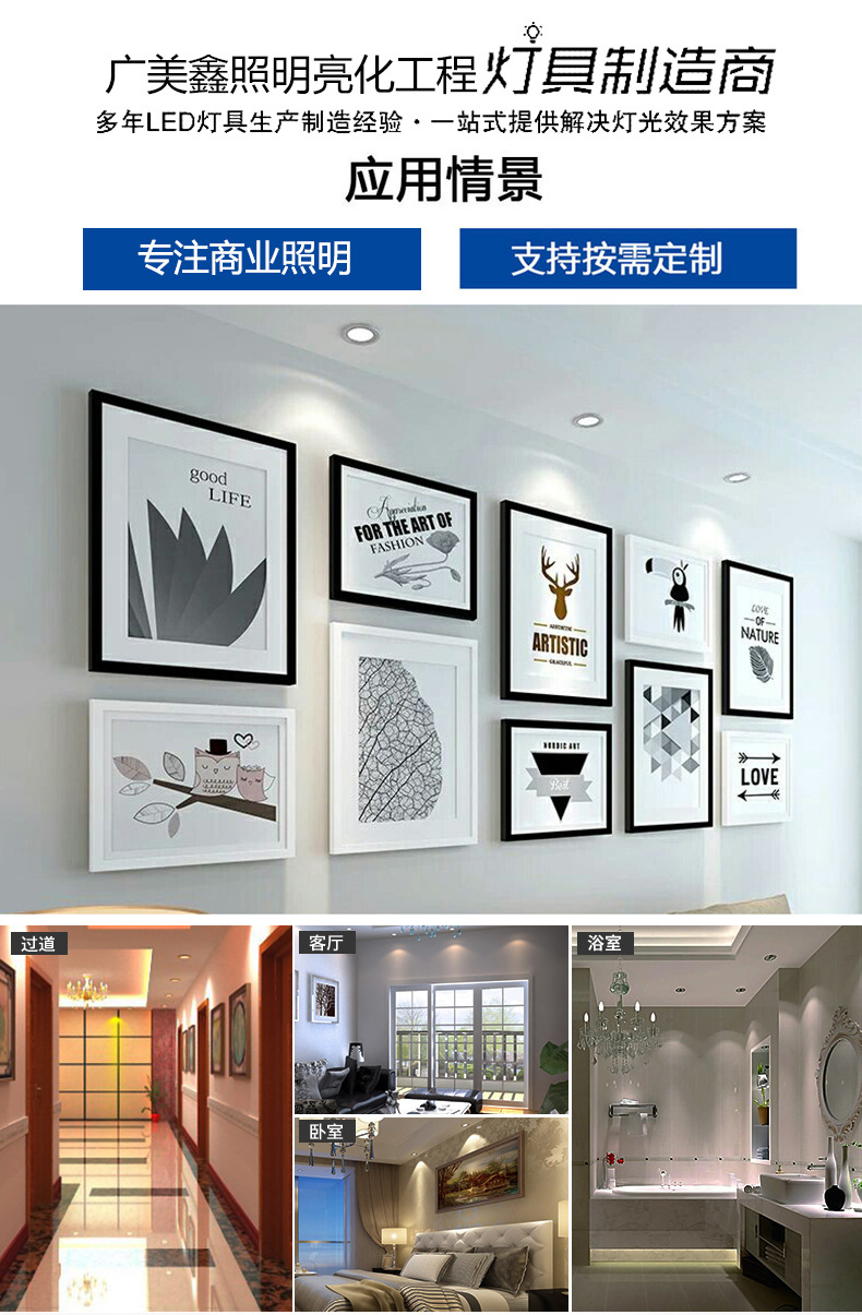 Beam angle | 30/60(°) | Packaging process | COB | Scope of use | Home, shopping, office, office, restaurant, bar, hotel, etc. |