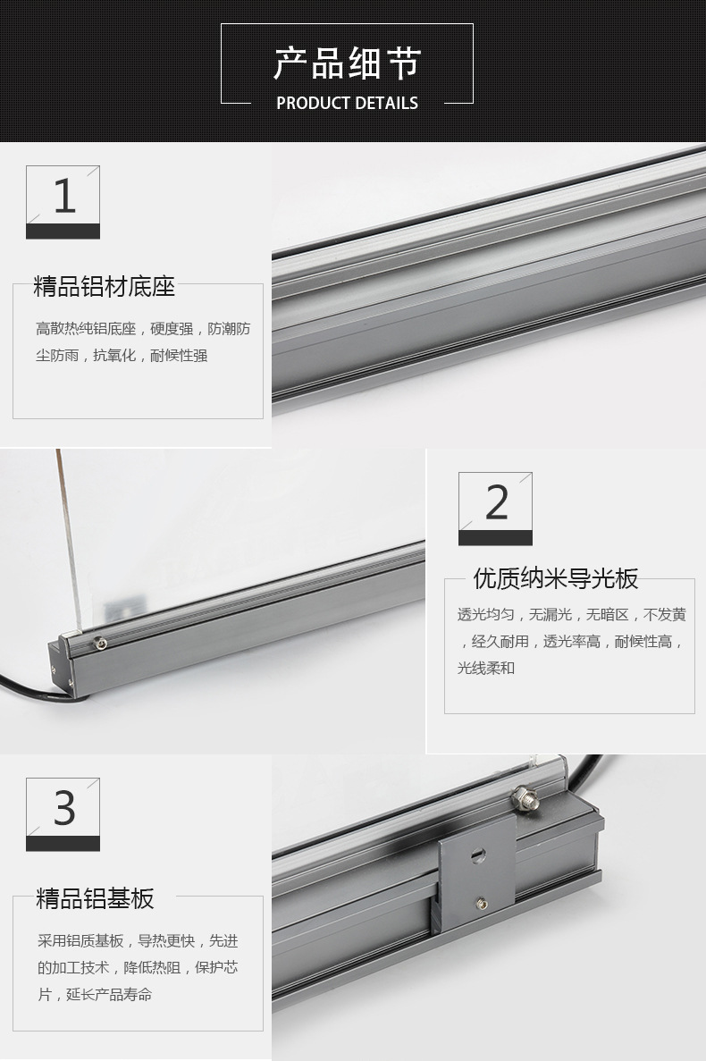 | 加工工藝 | 鋁型材+PMMA | 透光率 | 95(%) | 均勻度 | 98 |